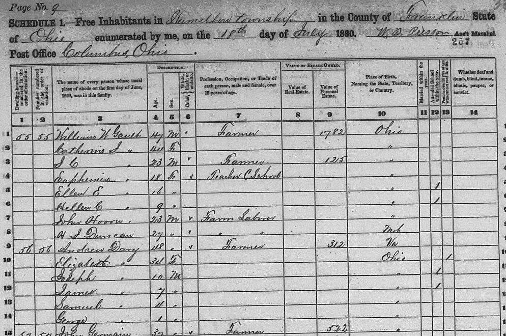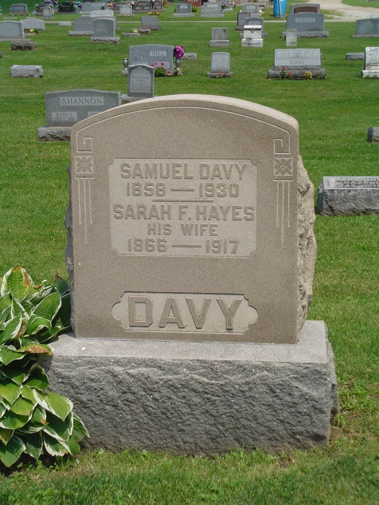 He was married to Patty Ann MORBITZER on 25 Jan 1963. Children were: Melinda Jean HARLER, Andrew Kermit HARLER, Melissa Ann HARLER. She was married to Michael Patrick CALLAHAN on 31 Dec 1960 in Columbus, Franklin Co., Ohio. Holy Cross Church Children were: Deborah Kay CALLAHAN , John Joseph CALLAHAN, Sean Michael CALLAHAN. He was married to Clara FRECH. She was married to Robert Allen MORBITZER in Columbus, Franklin Co., Ohio. She was divorced from Robert Allen MORBITZER in Columbus, Franklin Co., Ohio. Children were: Robert Frank MORBITZER, Terry Lee MORBITZER. Family History Library Film 1255015 NA Film Number T9-1015 Page Number 191C Parents: George HAYES and Mary Jane ROOP. Family History Library Film 1255015 NA Film Number T9-1015 Page Number 191C She was born in May 1880 in Ohio. Parents: George HAYES and Mary Jane ROOP. Family History Library Film 1255015 NA Film Number T9-1015 Page Number 191C He was married to Mary Jane ROOP. Children were: Sarah Francis HAYES, Annie E. HAYES, George W. HAYES, Emma J. HAYES. Family History Library Film 1255015 NA Film Number T9-1015 Page Number 191C Parents: George HAYES and Mary Jane ROOP. Family History Library Film 1255015 NA Film Number T9-1015 Page Number 191C She appeared on the census in 1900 in Lockbourne, Hamilton Twp., Franklin Co., Ohio. She appeared on the census in 1910 in Lockbourne, Hamilton Twp., Franklin Co., Ohio. She died on 16 Feb 1917 in Franklin Co., Hamilton Twp., Ohio. She was buried on 18 Feb 1917 in Lockbourne, Hamilton Twp., Franklin Co., Ohio. Sec 6 Fernwood Cemetery Parents: George HAYES and Mary Jane ROOP. She was married to Samuel S. DAVY in 1883. Children were: Samuel Roy DAVY, Lacy DAVY, Wilda A. DAVY, Ola M. DAVY. Family History Library Film 1255015 NA Film Number T9-1015 Page Number 104A She appeared on the census in 1900 in Groveport Village, Madison Twp., Franklin Co., Ohio. Series: T623 Roll: 1266 Page: 185 She appeared on the census in 1910 in Groveport Village, Madison Twp., Franklin Co., Ohio. Series: T624 Roll: 1183 Page: 151 She died on 27 Aug 1915 in Franklin Co., Hamilton Twp., Ohio. She Death Cert # 43712 on 27 Aug 1915 in Franklin Co., Hamilton Twp., Ohio. She was buried on 29 Aug 1915 in Lockbourne, Hamilton Twp., Franklin Co., Ohio. Fernwood Cemetery Sec 1 Lot 28 Parents: Solomon HAYES and Mary Ann (HAYES). She was married to Joseph DAVY in 1875 in Ohio. Children were: Mary E. DAVY, William E. DAVY, Andrew E. DAVY. He was married to Mary Ann (HAYES). Children were: Sarah Jane HAYES, James L. HAYES, Thomas L. HAYES. |