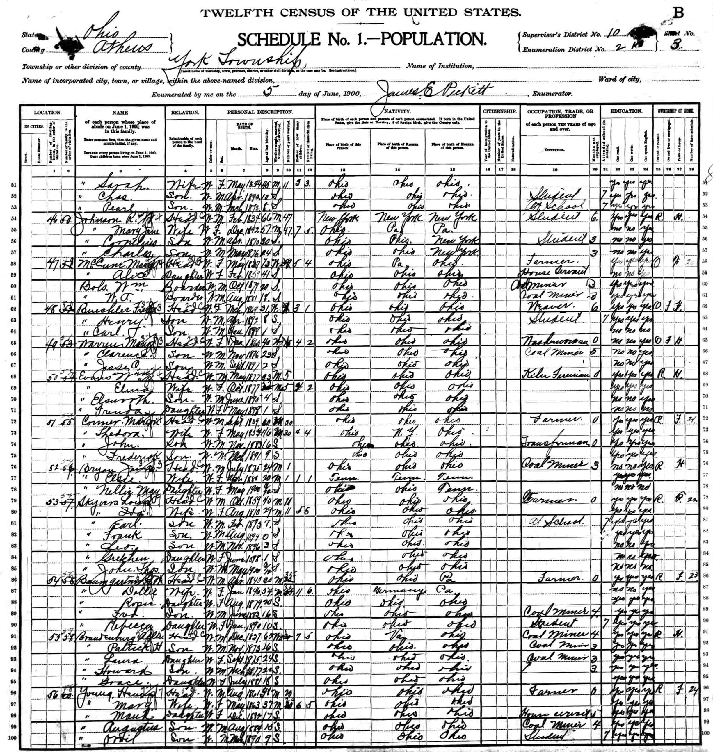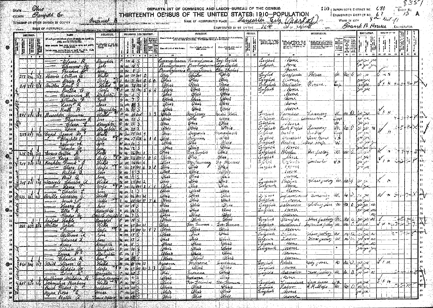 census in 1900 in Lancaster, Berne Twp., Fairfield Co., Ohio. He resided 321