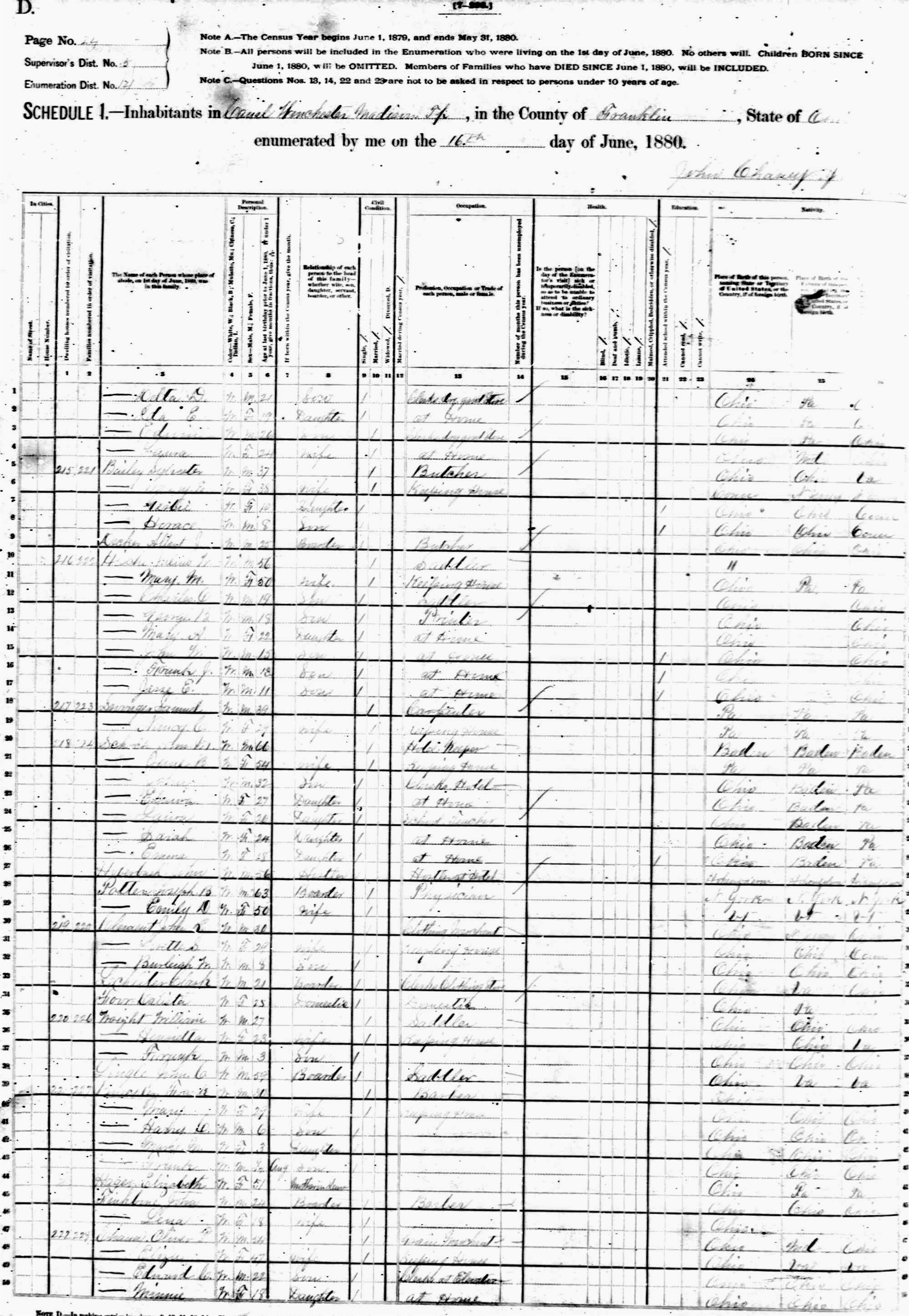 the census in 1880 in Lancaster, Berne Twp., Fairfield Co., Ohio. Other Information: