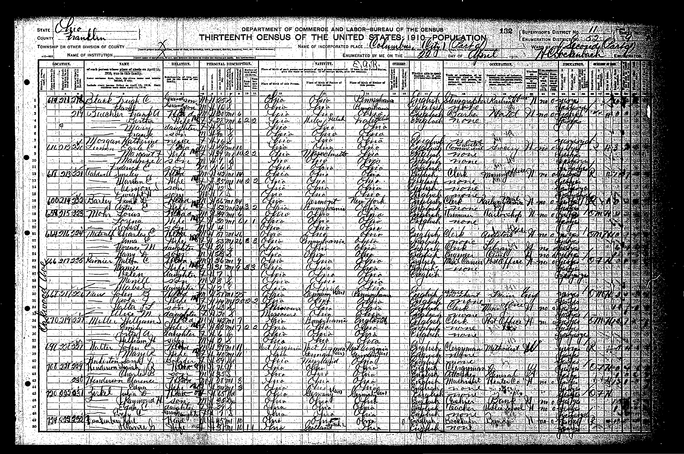 She appeared on the census in 1910 in Columbus, Franklin Co., Ohio. She appeared